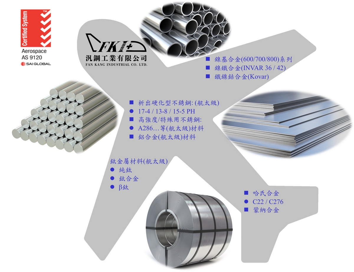 汎鋼工業有限公司成立於2022年5月,有國內外之供應體,提供航太、國防、醫療、電子及工業等所需金屬物料與相關製程所需之技術。與歐、美、日等各國先進材料供應商,維持良好關係且部分有合作及代理。加上團隊成員多年與國際材料廠商合作經驗,可提供包含純鈦、鈦合金、鎳基合金、鈷基合金、超合金、高強度不锈鋼、航太級不鏽鋼、鋁合金、航太級鋁合金、鑄造鋁板ACP5080、3D列印金屬粉末等材料,應用於航太、醫療、及各項工業用途。