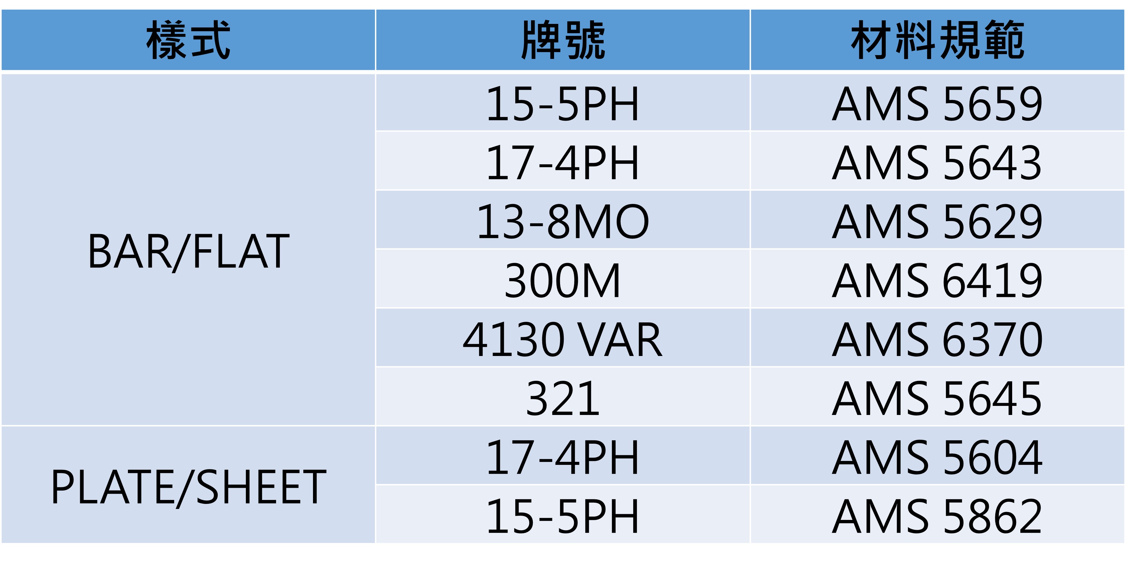 不鏽鋼 (630、17-4PH、15-5PH、SAE-4130、300M)